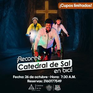Zipaquirá, Cundinamarca. La Catedral de Sal confirmó que este sábado 26 de octubre se llevará a cabo una nueva edición de la BiciExperiencia, recorrido turÃstico en bicicleta dentro de sus túneles subterráneos, a 180 metros de profundidad. La actividad hace parte del programa oficial de turismo activo del complejo y estará disponible únicamente mediante inscripción previa.